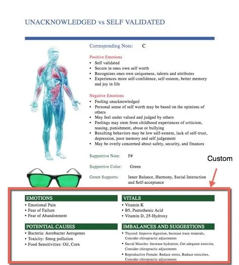 Through decades of research, it was found that missing or low frequencies correspond to specific weaknesses in organs and body systems, as well as emotions. Higher frequencies correspond to backup systems and inflammation or infection.